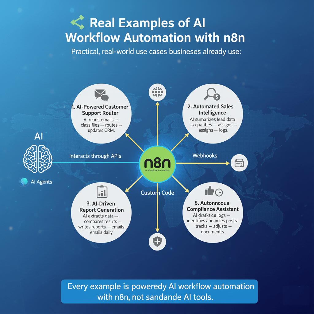 Every example is powered by AI workflow automation with n8n, not standalone AI tools.